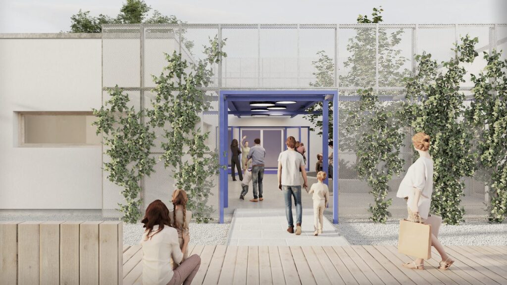 Południowa część budynku została zaprojektowana tak, aby sale zajęciowe miały bezpośredni dostęp do dwóch mniejszych dziedzińców. Wycięcia te, osłonięte ażurowymi przegrodami, tworzą przytulne, bezpieczne przestrzenie służące jako zewnętrzne sale zajęciowe, umożliwiające prowadzenie zajęć na świeżym powietrzu przy jednoczesnym zachowaniu ochrony przed nadmiernym nasłonecznieniem.