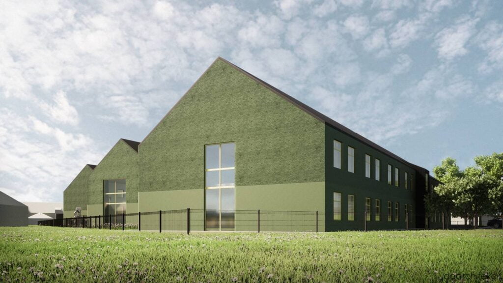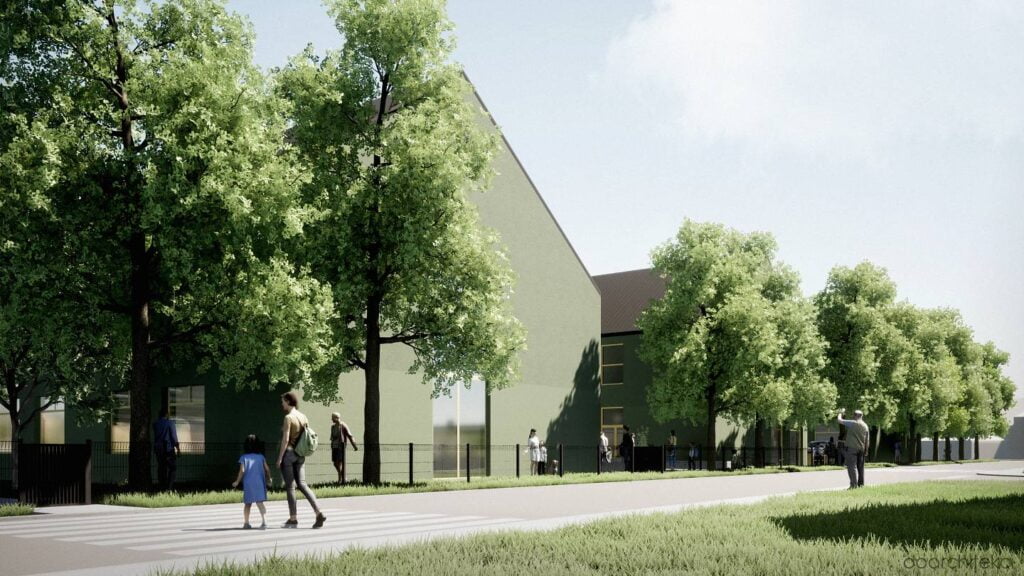 Siedziba niepublicznej szkoły została zaprojektowana jako obiekt składający się z dwóch skrzydeł połączonych przeszklonym, dwupoziomowym łącznikiem. Z kolei sześciooddziałowe publiczne przedszkole mieści się w dwukondygnacyjnym budynku, którego wejście wyróżnia subtelnie wysunięta fasada. Elewacje, utrzymane w odcieniach zieleni o zróżnicowanej fakturze, harmonijnie wpisują się w otoczenie, nadając budynkom nowoczesny i przyjazny charakter.